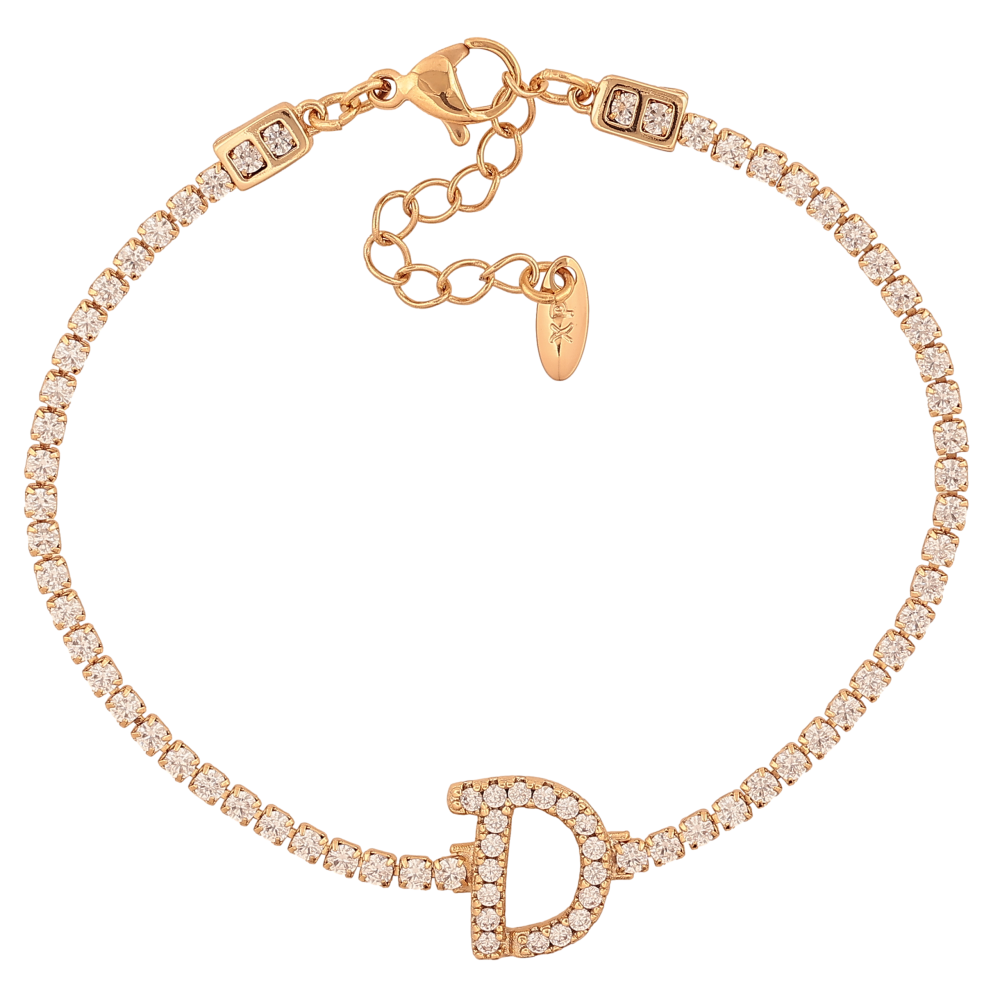 Браслет Xuping колір Позолота 18K "Кристальна доріжка з літерою D" розмір з дод. ланцюжком 17.5-21см х 2-13мм