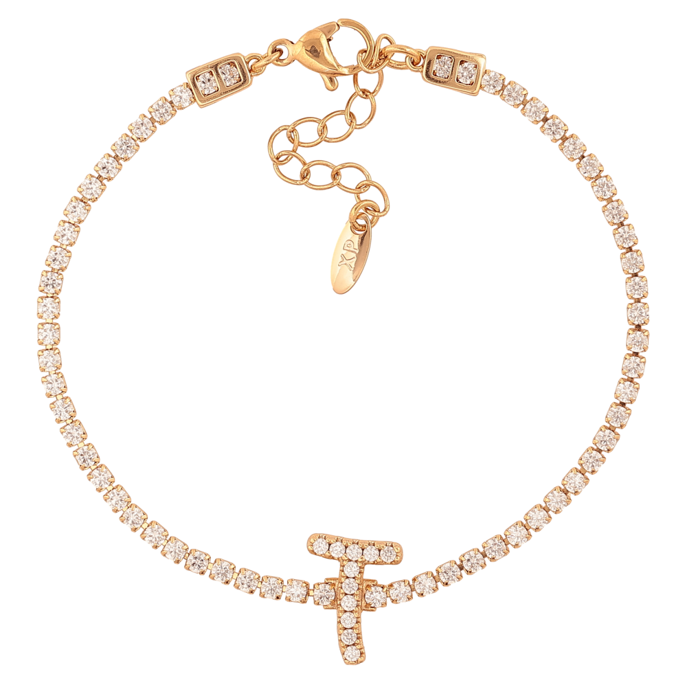 Браслет Xuping колір Позолота 18K "Кристальна доріжка з літерою T" розмір з дод. ланцюжком 17-20.5см х 2-13мм