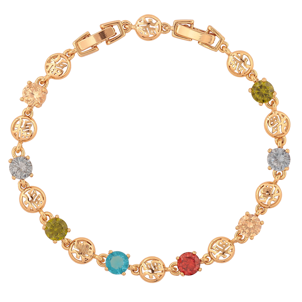 Браслет Xuping колір Позолота 18К "Китайські ієрогліфи з різнокольоровими кристалами" розмір з дод. замком 18.5,21см х 5-7мм