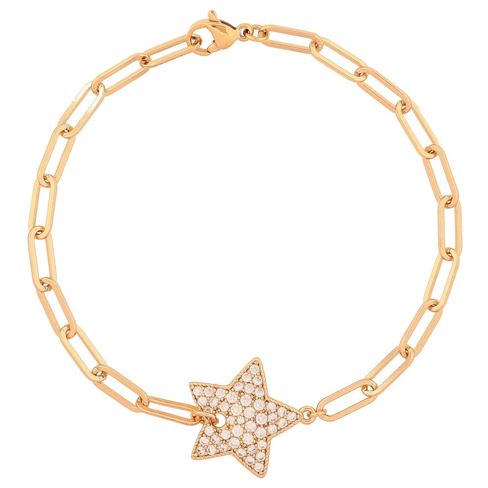Браслет Xuping колір Позолота 18К "Ланцюжок Якірний зі вставкою зірка" розмір 19.5см х 4-18мм