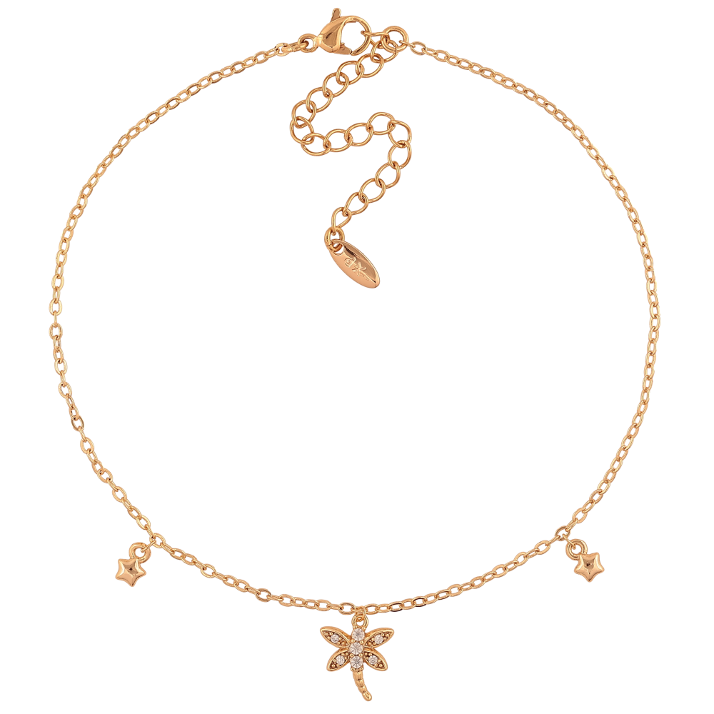 Браслет Xuping колір Позолота 18K на ногу "Ланцюжок з підвісками бабки" розмір з доп.ланцюжком 23-28см х 1.5мм