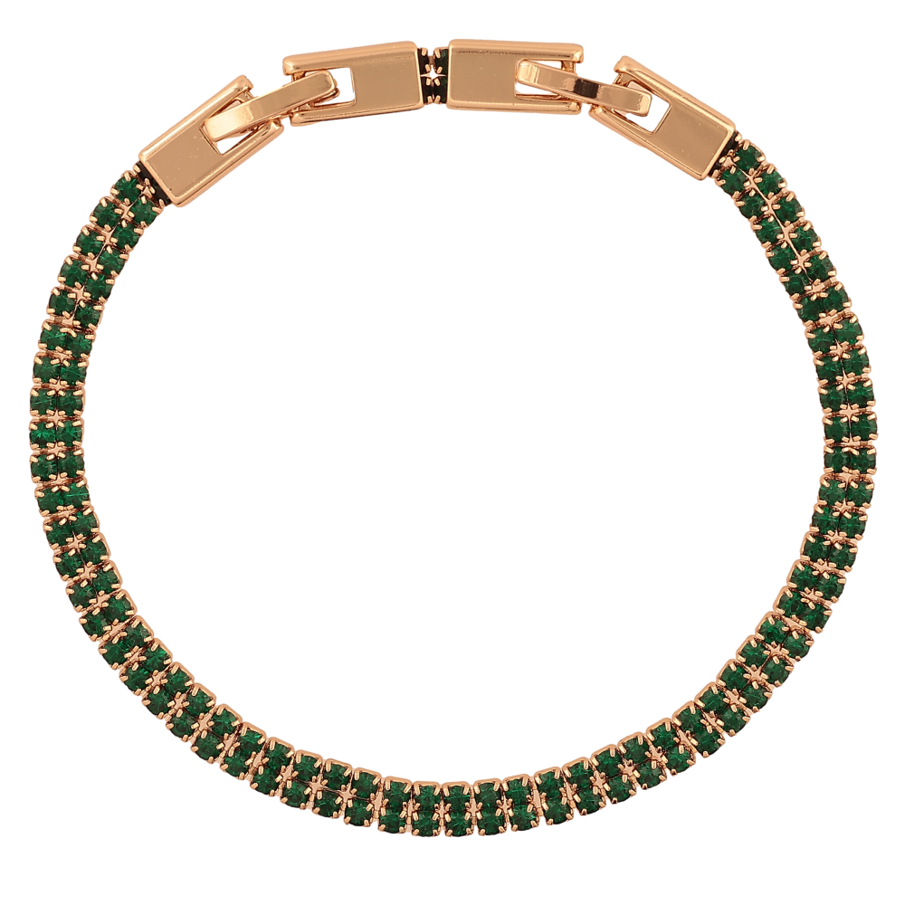 Браслет Xuping колір Позолота 18K "Подвійна доріжка зелених кристалів" розмір з дод. замком 17,19см х 4мм