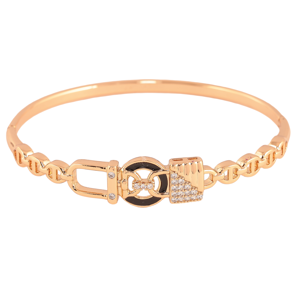 Браслет Xuping колір Позолота 18K "Візерунок з кристалами і чорною емаллю" ø 5.7см