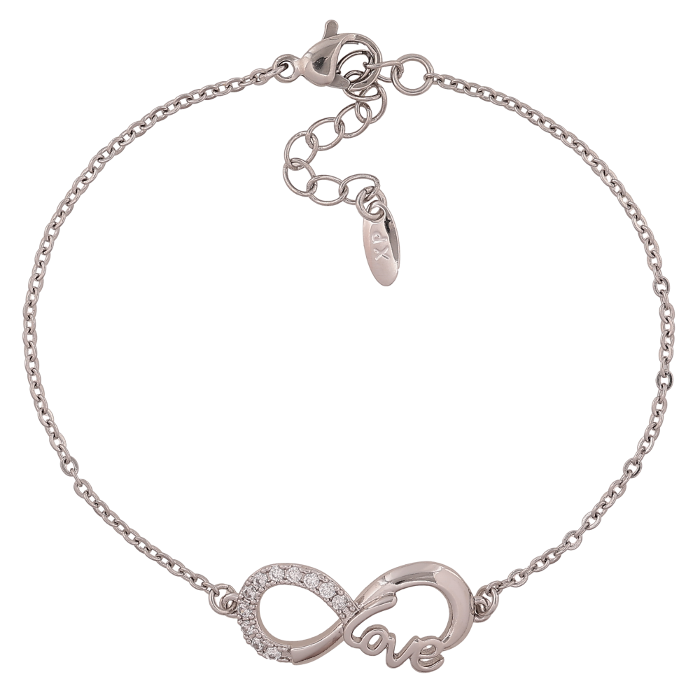 Браслет Xuping колір Родій "Ланцюжок із вставкою знак нескінченності" довжина з дод. ланцюжком 17.5-20.5см х 1.5-12мм