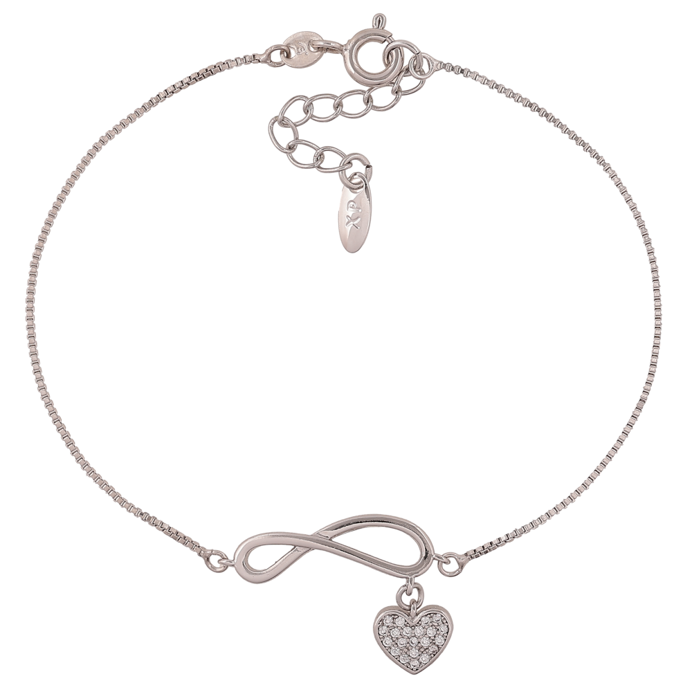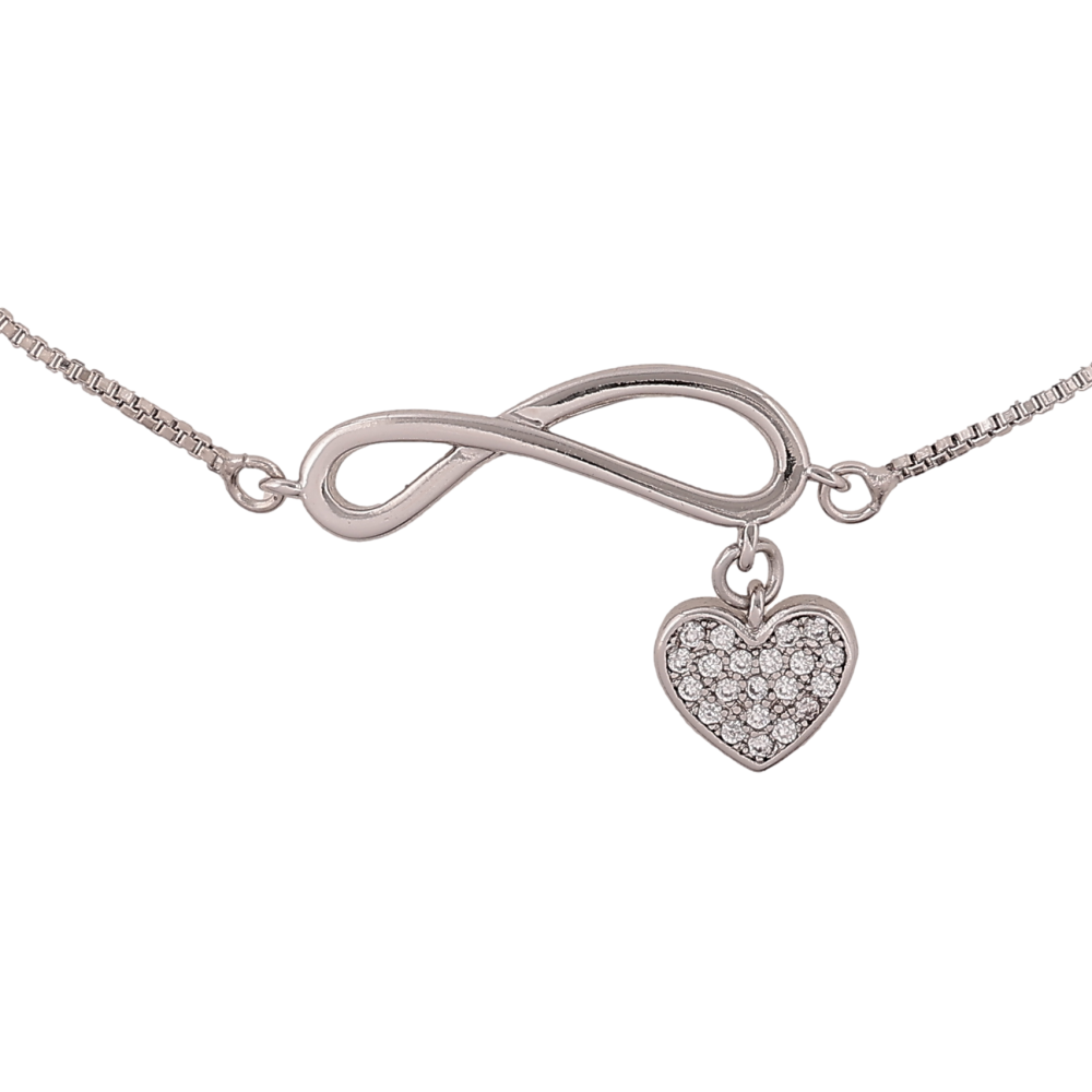 Браслет Xuping колір Родій "Ланцюжок із вставкою знак нескінченності та підвіскою серця" довжина з дод. ланцюжком 18.5-21см х 1-6мм
