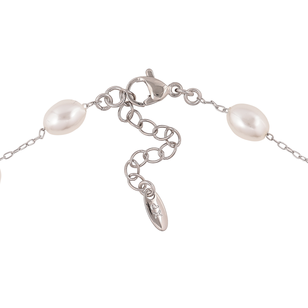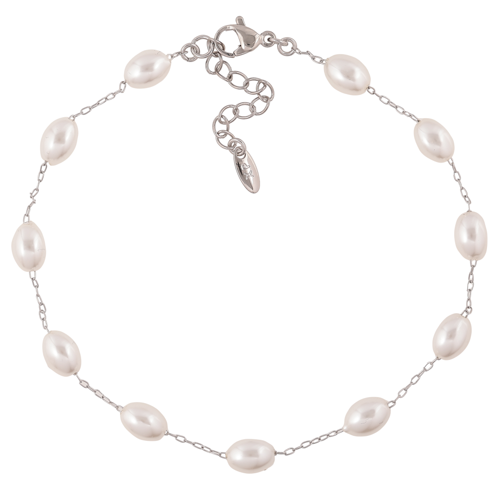 Браслет Xuping колір Родій на ногу "Ланцюжок із перлинами" довжина з дод. ланцюжком 23-27см х 1-6мм
