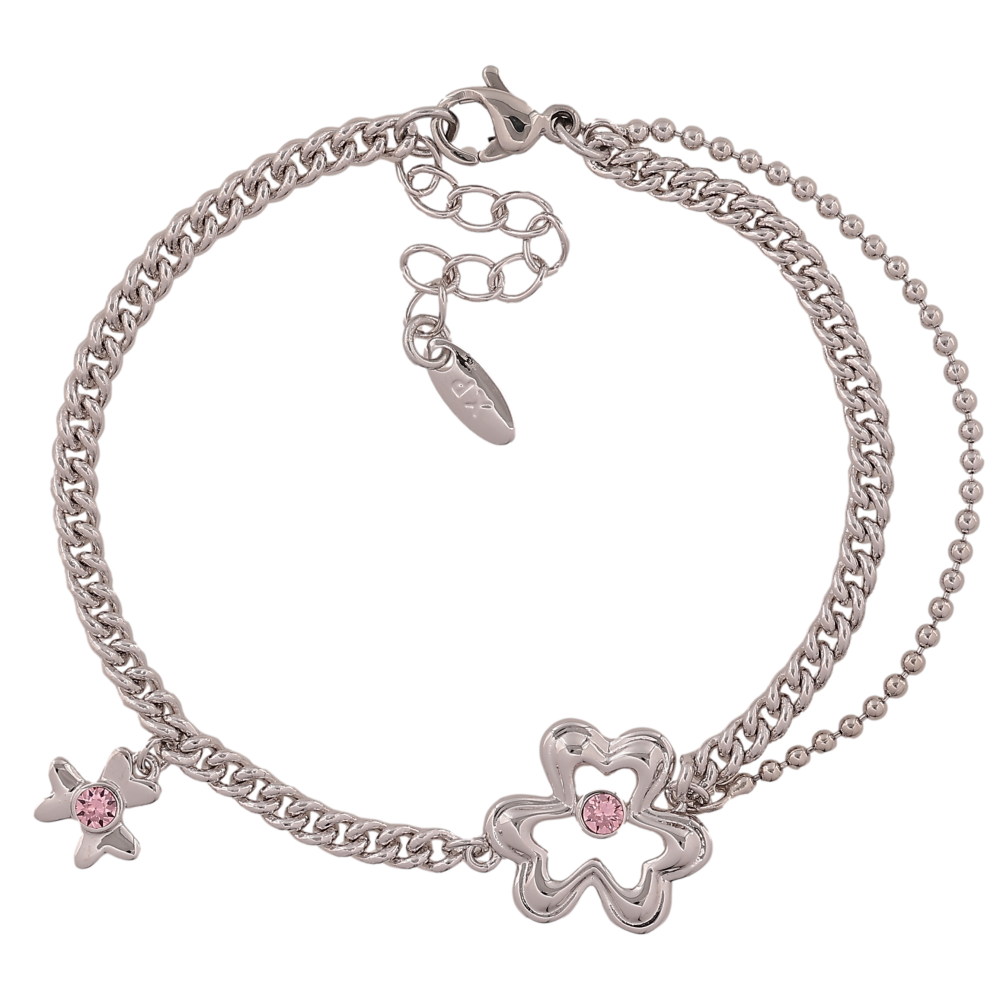 Браслет Xuping колір Родій "Подвійний ланцюжок з квіточками" довжина з дод. ланцюжком 15.5-18.5см х 2-15мм