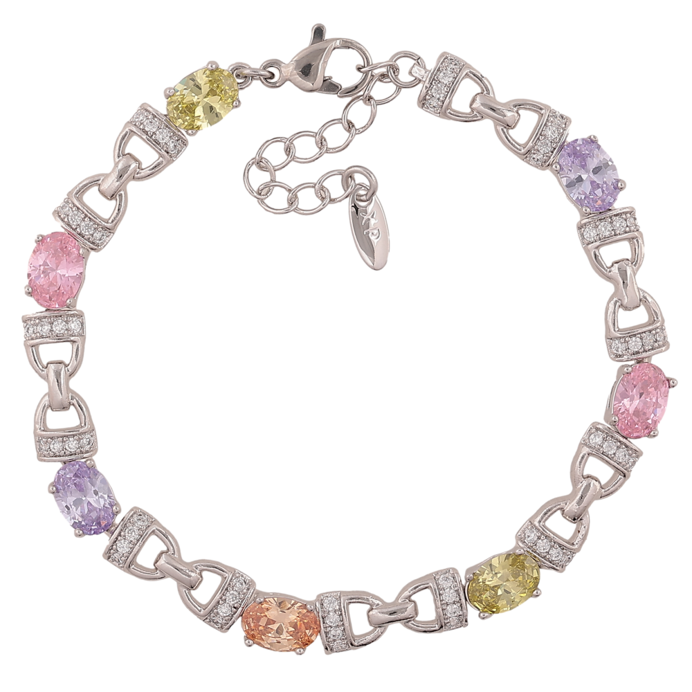 Браслет Xuping колір Родій "Візерунок з кольоровими кристалами" довжина з дод. ланцюжком 16.5-19.5см х 5-6мм