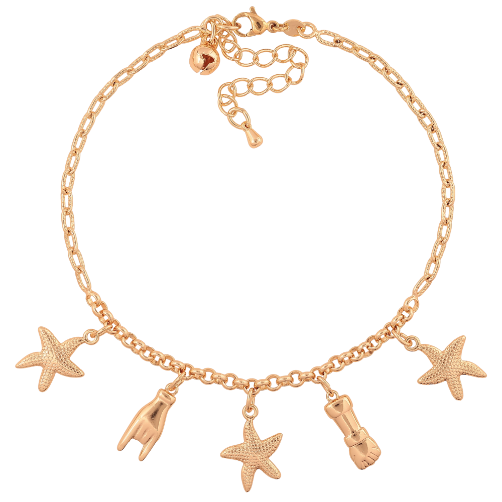 Браслет Xuping M&L колір 18К на ногу "Ланцюжок з підвісками" довжина з дод. ланцюжком 23-28.5см х 3мм