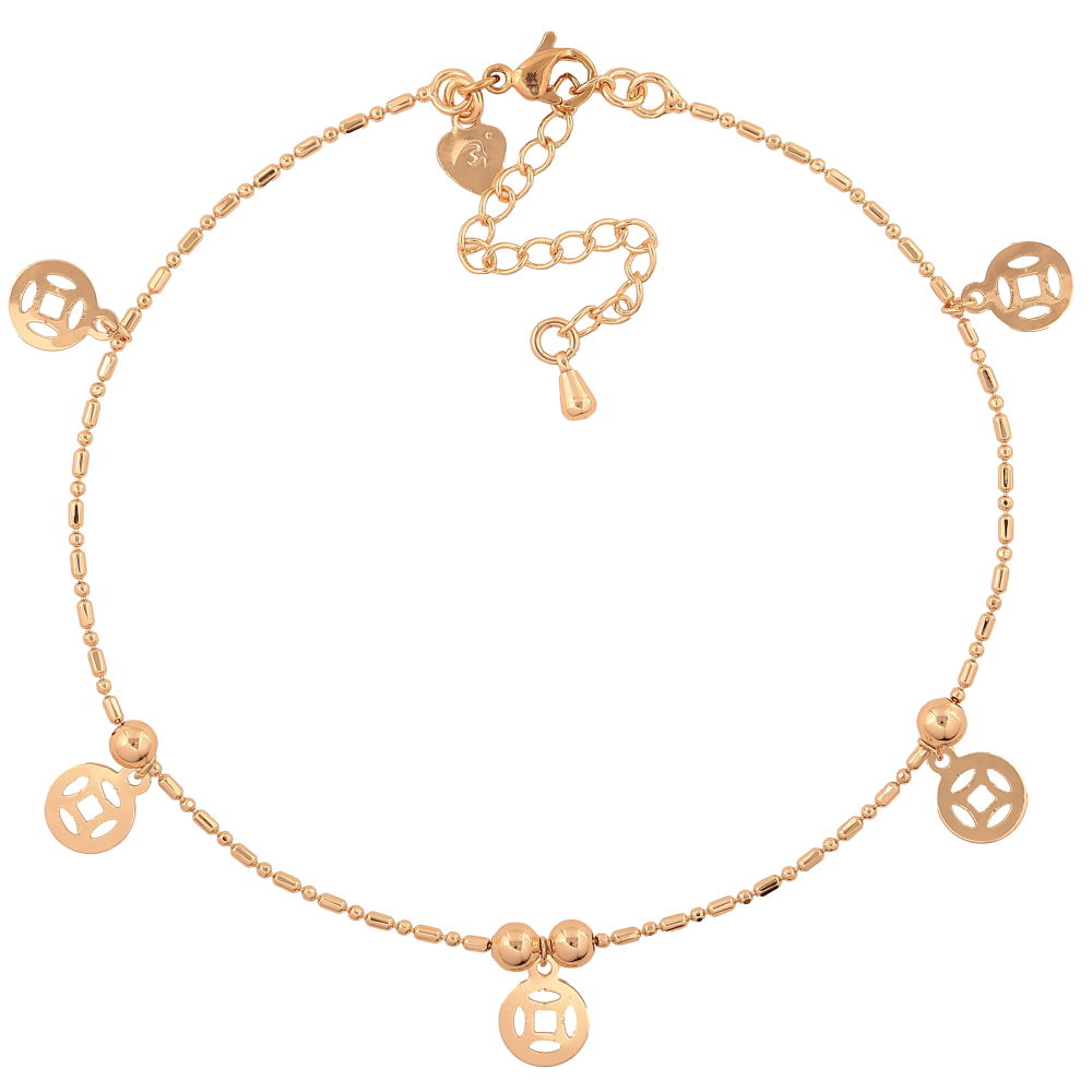 Браслет Xuping M&L колір 18К на ногу "Ланцюжок з підвісками" довжина з дод. ланцюжком 23-28см х 1мм