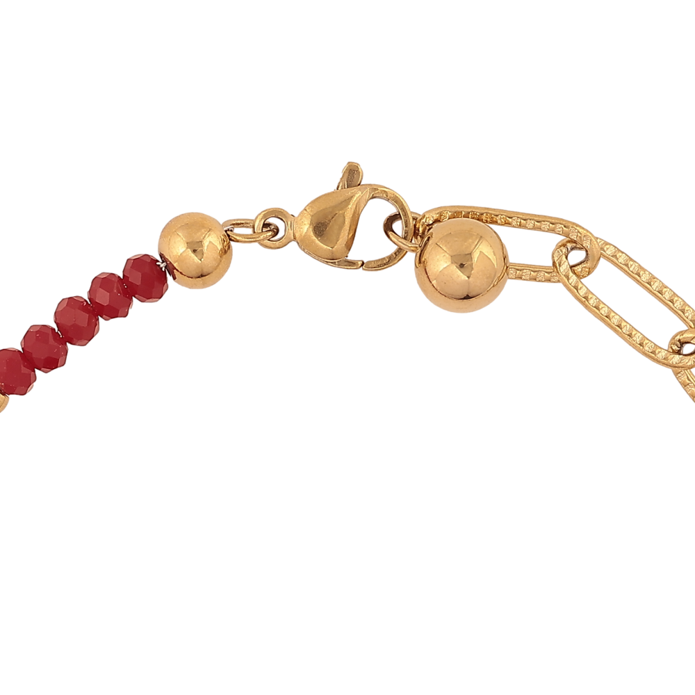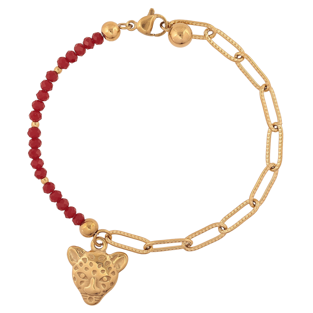Браслет Xuping ТТМ Stainless Steel колір 14К "Бордові намистини з ланцюжком та підвіскою леопард" довжина 18.5см х 2-4мм