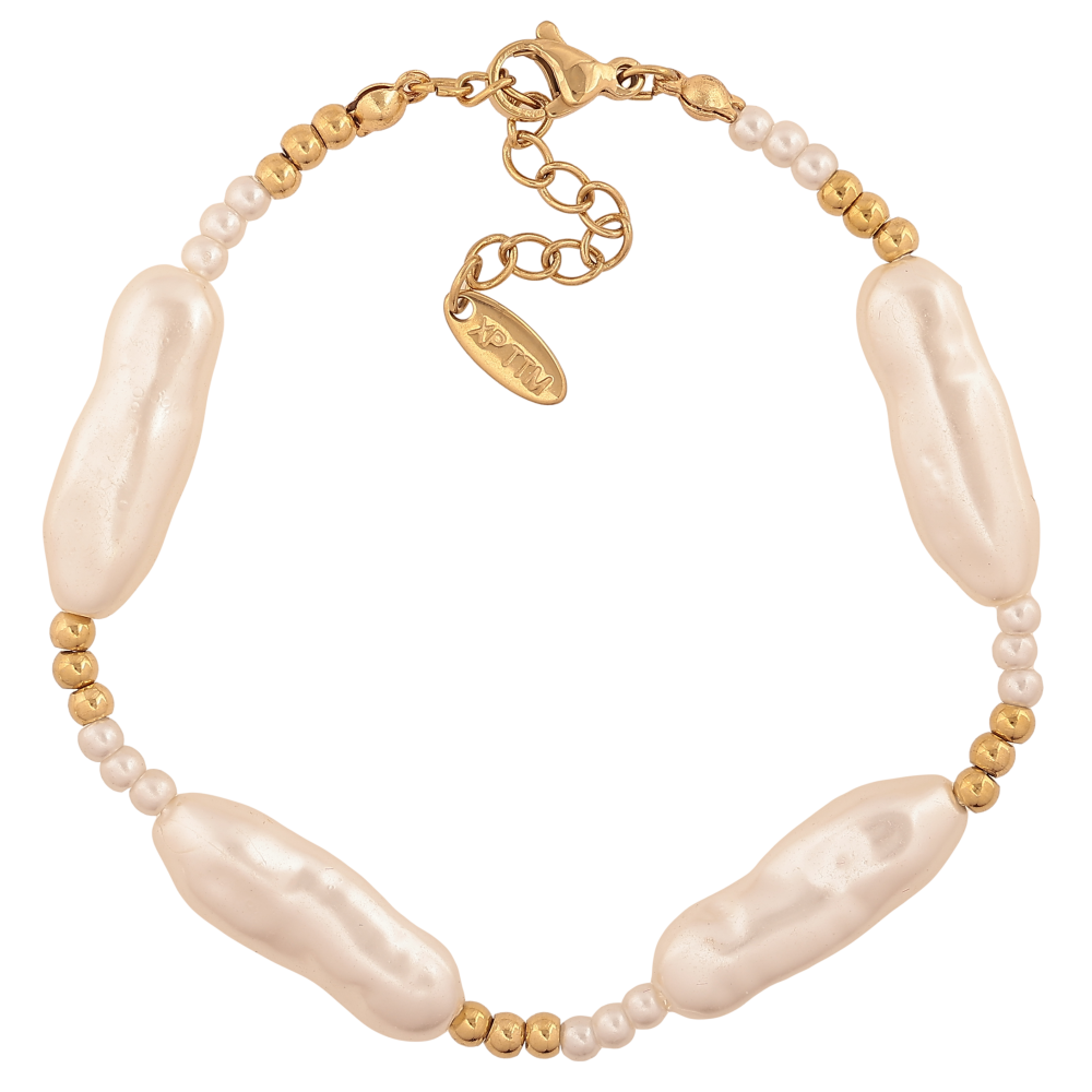 Браслет Xuping ТТМ Stainless Steel колір 14К "Декоративні намистини" довжина з дод. ланцюжком 18.5-22см х 3-8мм