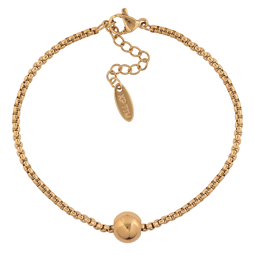 Браслет Xuping ТТМ Stainless Steel колір 14К "Ланцюжок Венеціанський з намистиною, ø 8мм" довжина з дод. ланцюжком 17-20.5см х 2мм