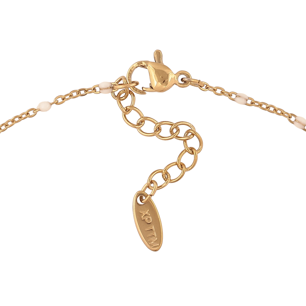 Браслет Xuping ТТМ Stainless Steel колір 14К на ногу "Ланцюжок з білою емаллю та підвісками" довжина з дод. ланцюжком 27.5-30.5см х 1.5мм