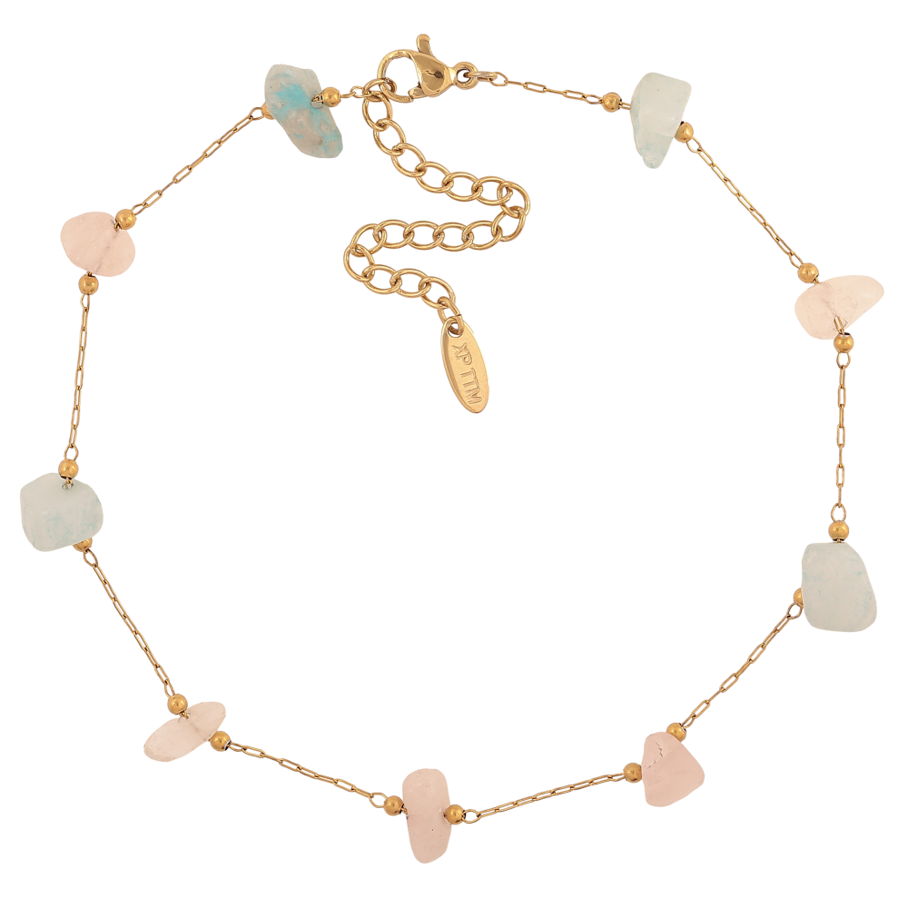 Браслет Xuping ТТМ Stainless Steel колір 14К на ногу "Ланцюжок з кольоровим камінням" довжина з доп. ланцюжком 24.5-30см х 1-2мм