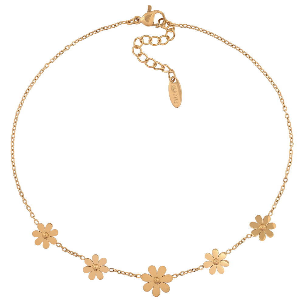 Браслет Xuping ТТМ Stainless Steel колір 14К на ногу "Ланцюжок з квіточками" довжина з дод. ланцюжком 26.5-30см х 1.5-10мм