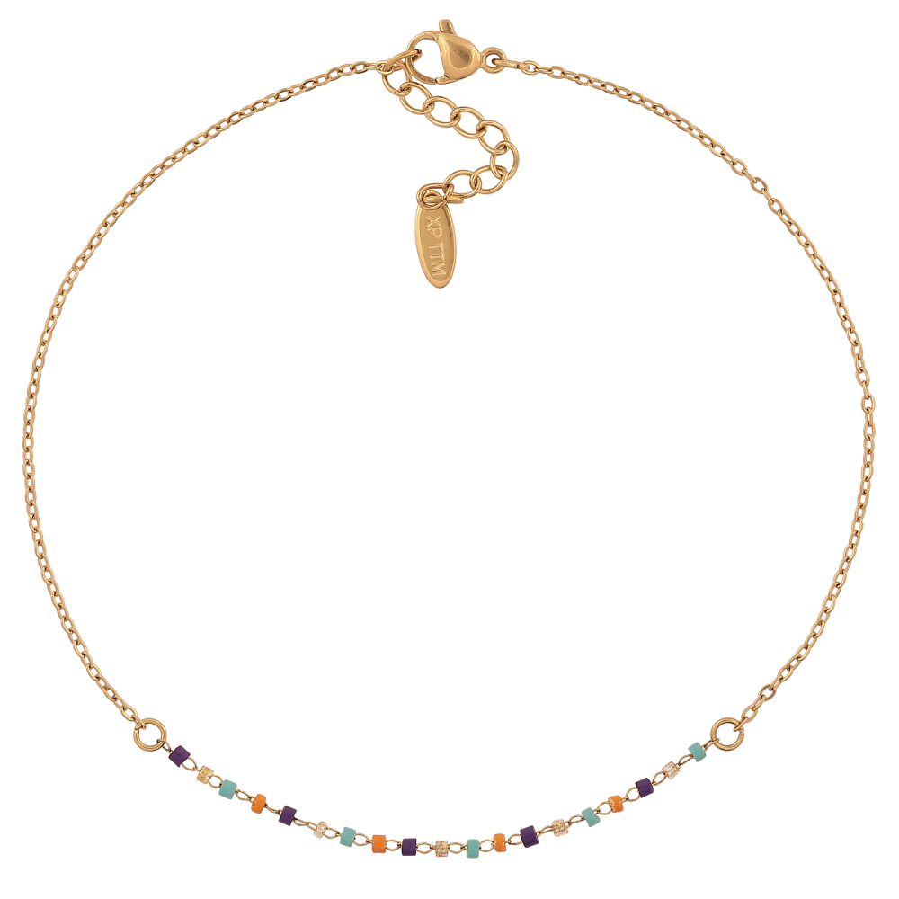 Браслет Xuping ТТМ Stainless Steel колір 14К на ногу "Ланцюжок з різнокольоровим бісером" довжина з дод. ланцюжком 26-29см х 1.5-2мм