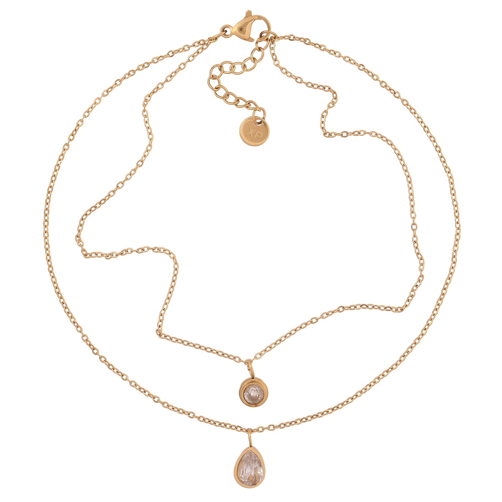 Браслет Xuping ТТМ Stainless Steel колір 14К на ногу "Подвійний ланцюжок із кристальними підвісками" довжина з дод. ланцюжком 24-27см х 1мм