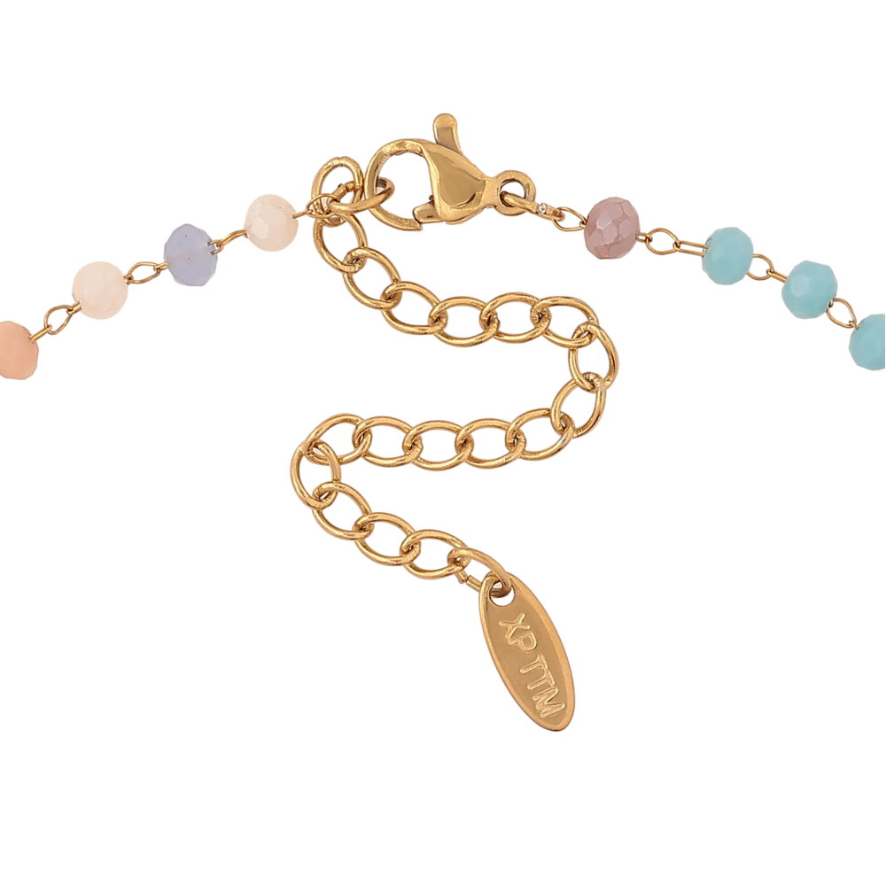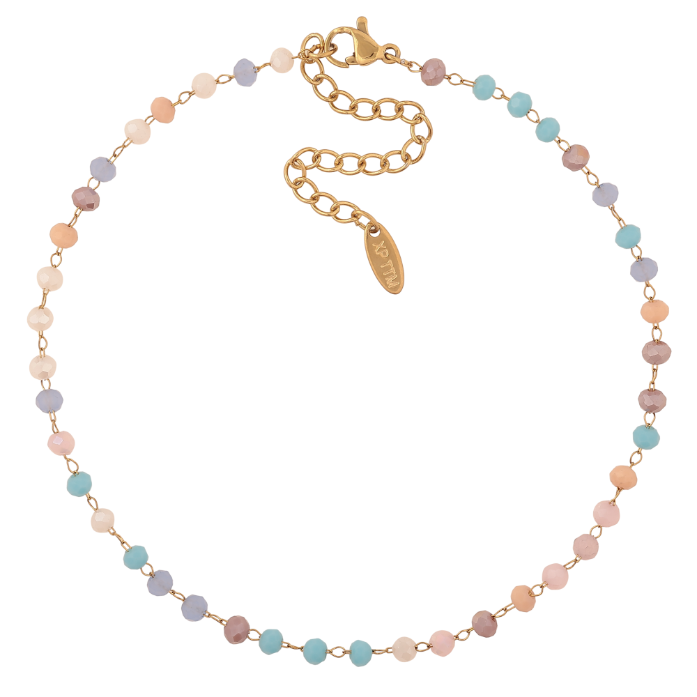 Браслет Xuping ТТМ Stainless Steel колір 14К на ногу "Різнобарвні намистини" довжина з дод. ланцюжком 24.5-30см х 4мм