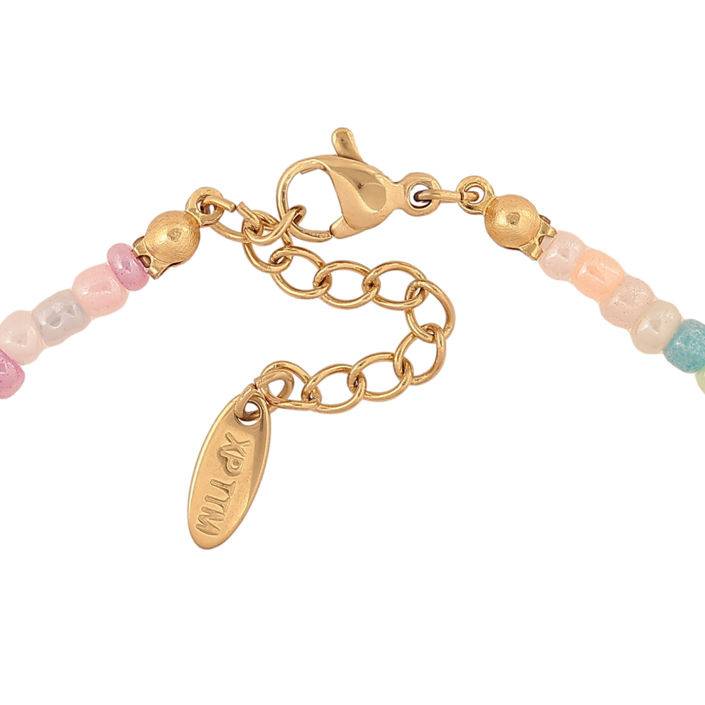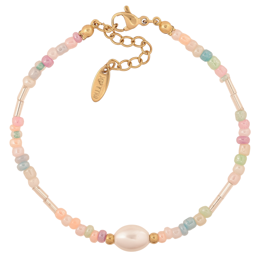 Браслет Xuping ТТМ Stainless Steel колір 14К "Нитка різнокольорового бісеру з перлинною намистиною" довжина з дод. ланцюжком 18-21.5см х 2-7мм