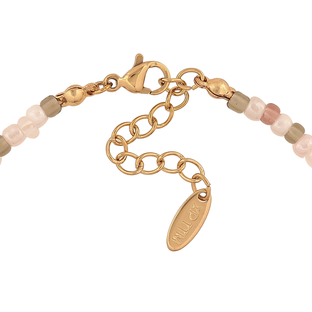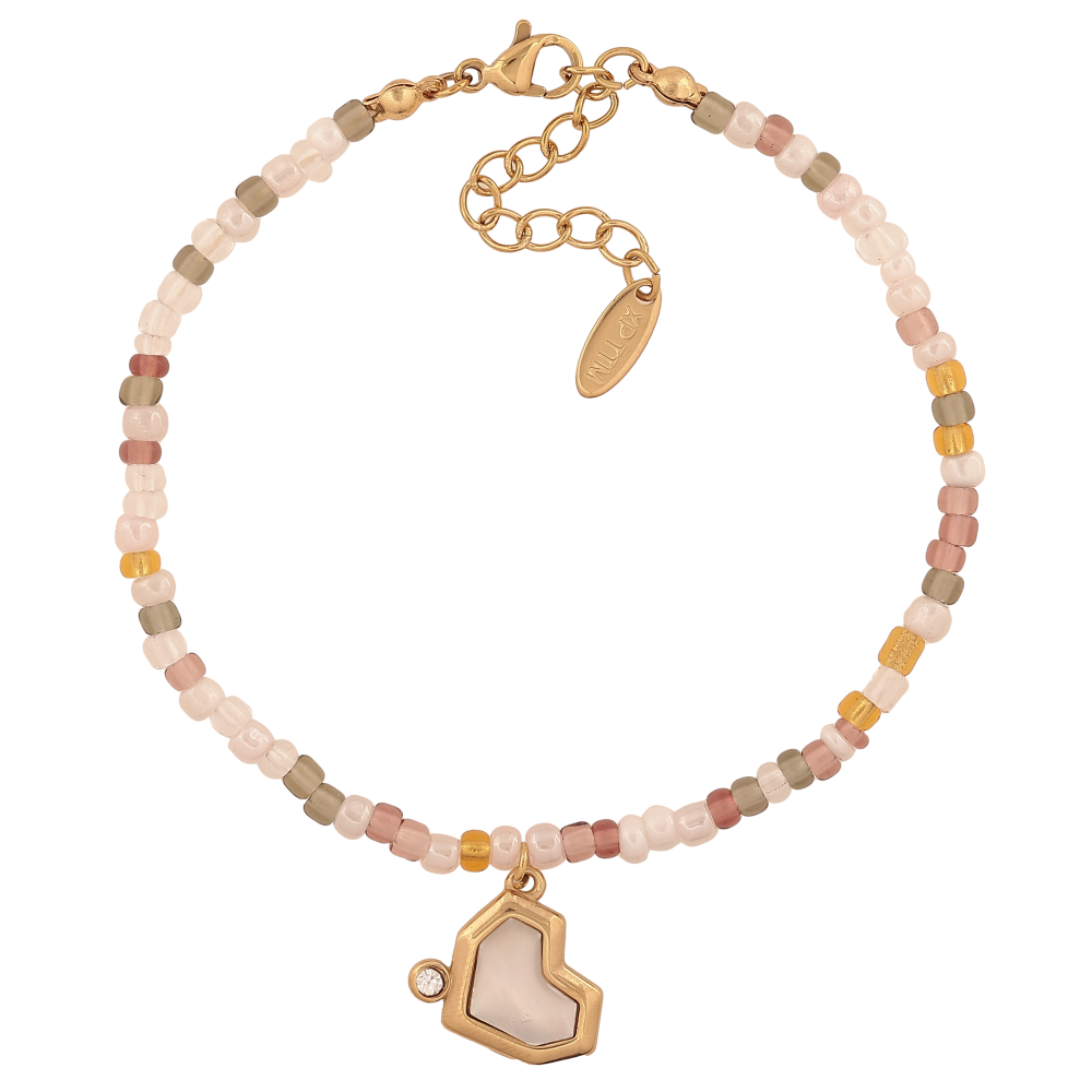 Браслет Xuping ТТМ Stainless Steel колір 14К "Нитка різнокольорового бісеру з підвіскою серця" довжина з дод. ланцюжком 18-21.5см х 3мм