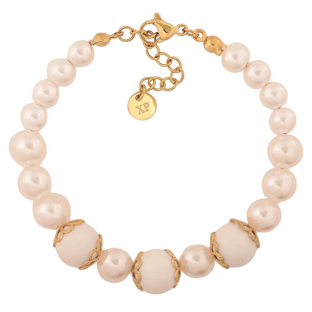 Браслет Xuping ТТМ Stainless Steel колір 14К "Перлинні намистини" довжина з дод. ланцюжком 17-20см х 6-10мм