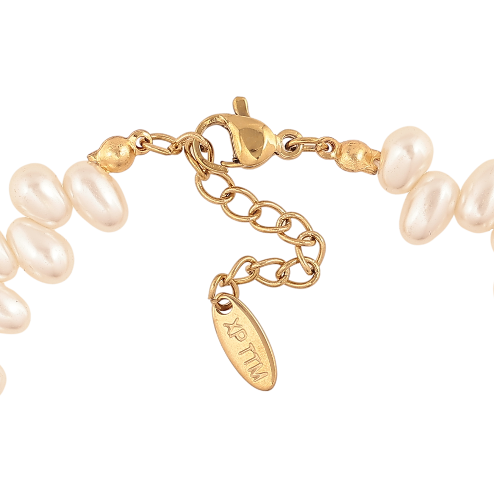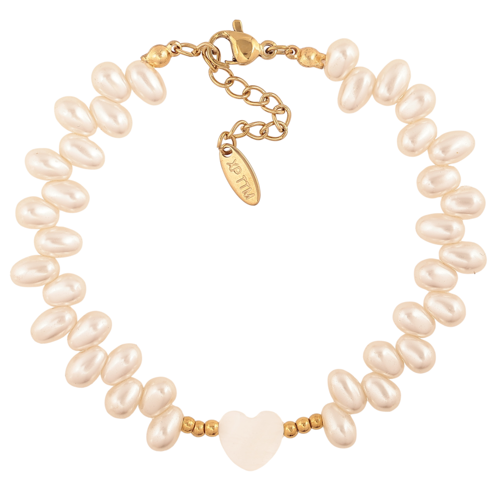 Браслет Xuping ТТМ Stainless Steel колір 14К "Перлинні намистини з перламутровим серцем" довжина з дод. ланцюжком 17.5-21см х 2-10мм