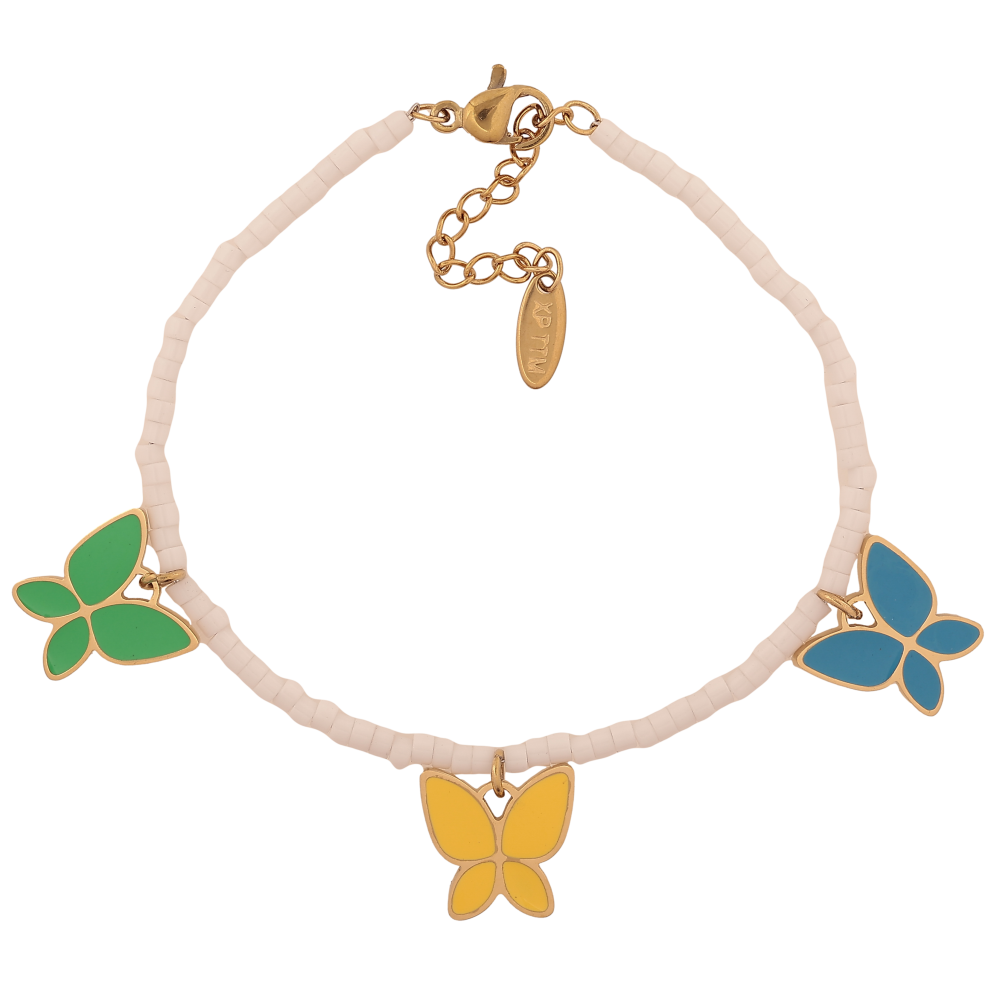 Браслет Xuping ТТМ Stainless Steel колір 14К "Різнокольорові метелики" довжина з дод. ланцюжком 17.5-20.5см х 2.5мм