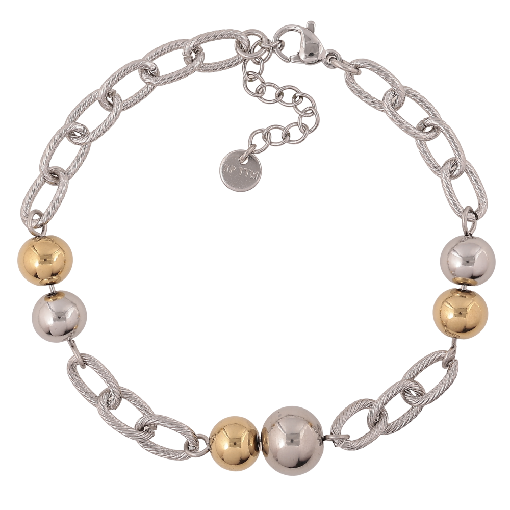 Браслет Xuping ТТМ Stainless Steel колір Родій + 14К "Ланцюжок з намистинами" довжина з дод. ланцюжком 19-22.5см х 6-10мм