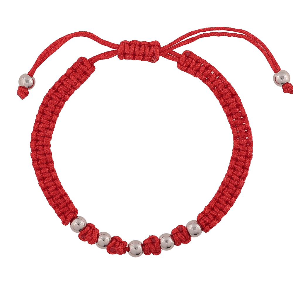 Браслет Xuping ТТМ Stainless Steel колір Родій "Червоний плетений шнур з намистинами" на затяжці довжина 14-25см х 5-6мм