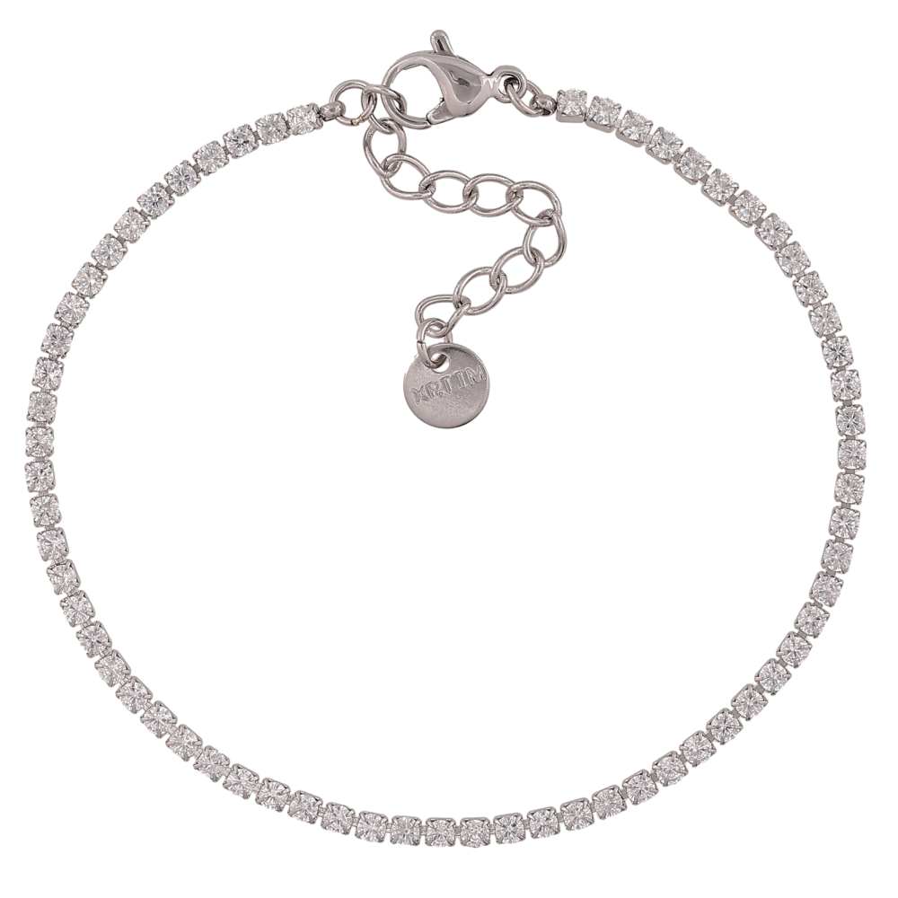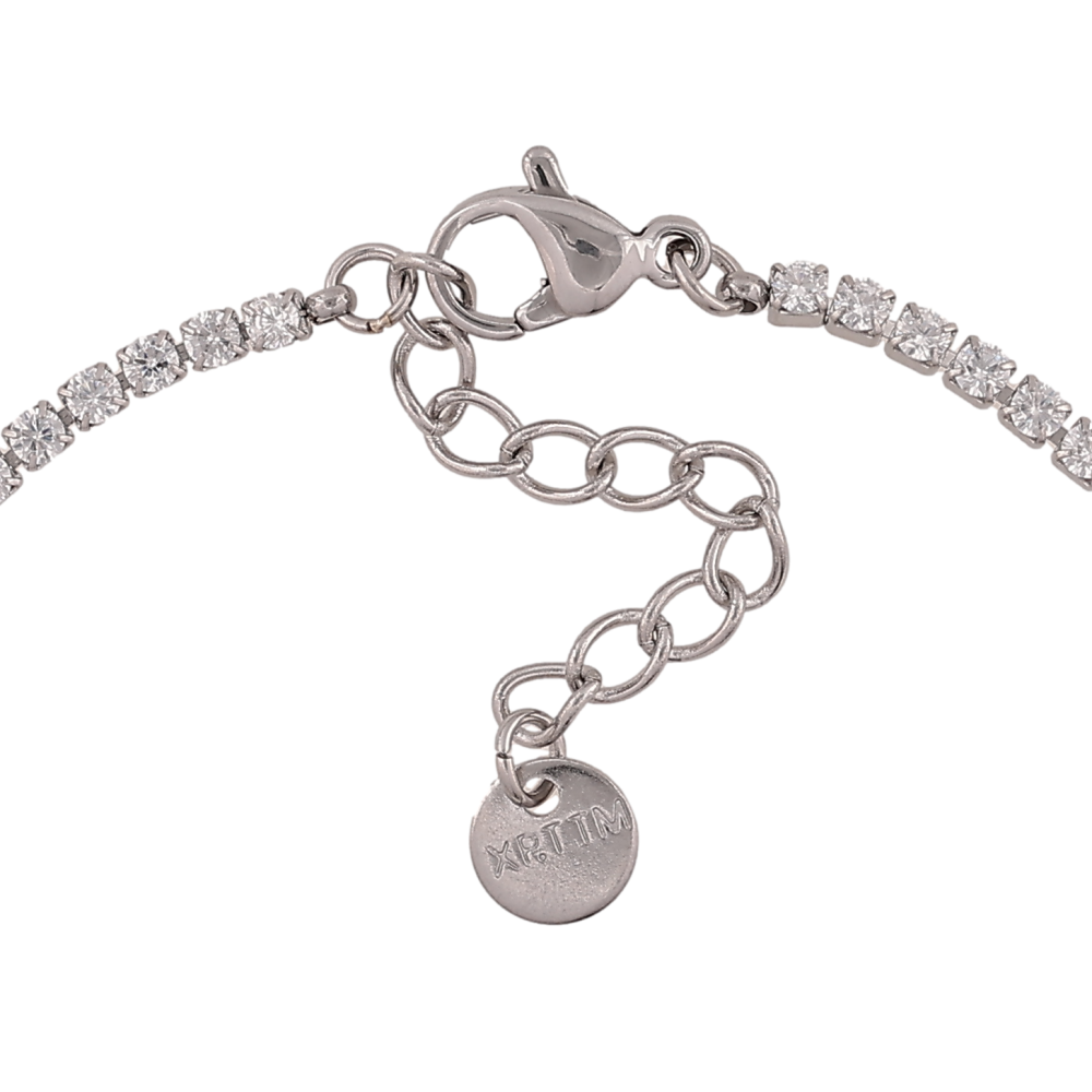 Браслет Xuping ТТМ Stainless Steel колір Родій "Доріжка кристалів" довжина з дод. ланцюжком 17-20.5см х 2мм