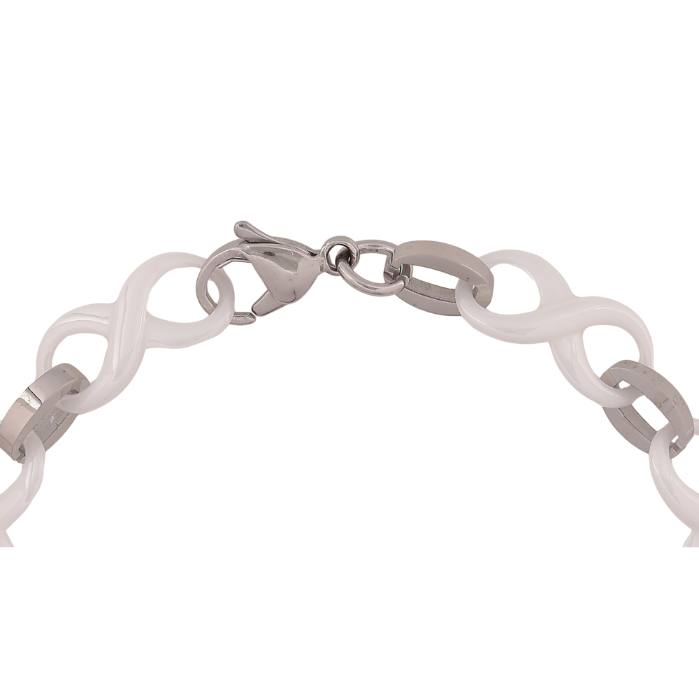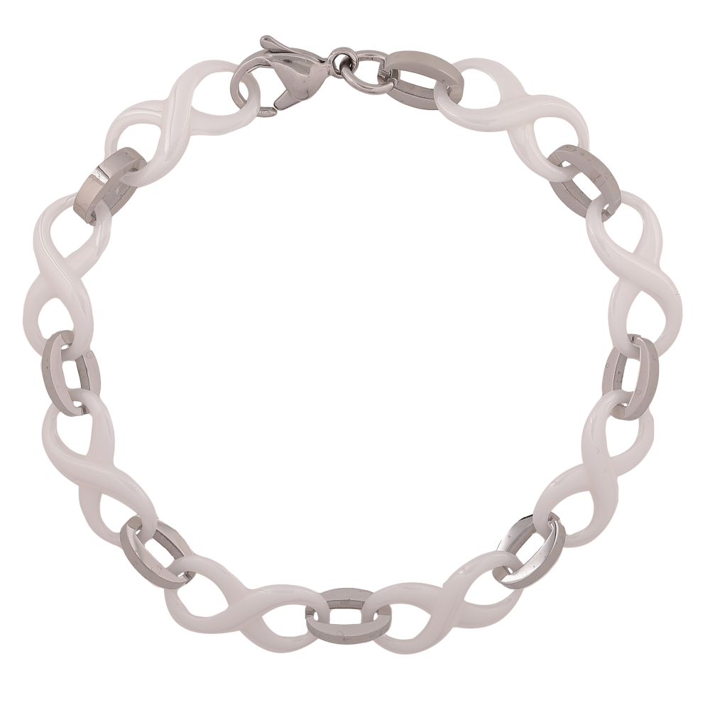 Браслет Xuping ТТМ Stainless Steel колір Родій "Ланки вісімки з білої кераміки" довжина 21см х 10мм
