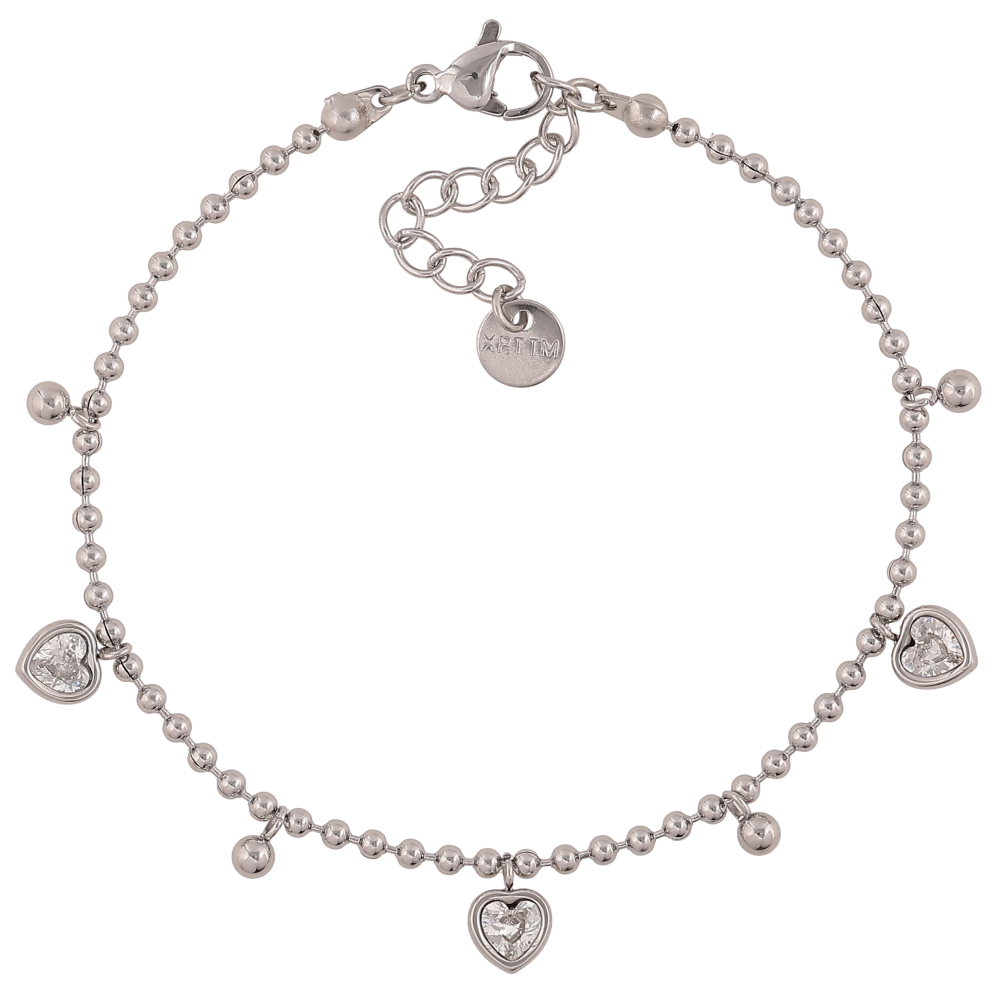 Браслет Xuping ТТМ Stainless Steel колір Родій "Ланцюжок з кристальними сердечками" довжина з дод. ланцюжком 17-20см х 2мм