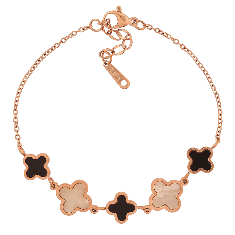 Браслет Нержавіюча сталь "Ланцюжок з чорною та перламутровою конюшиною" розмір з доп.ланцюжком 17.5-20.5см х 1-11мм
