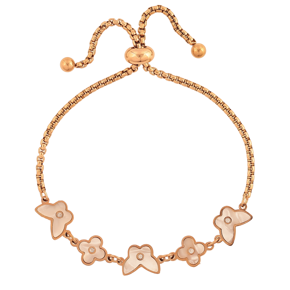 Браслет Нержавіюча сталь "Ланцюжок з конюшиною та метеликами" на затяжці розмір 10-21см х 2-8мм
