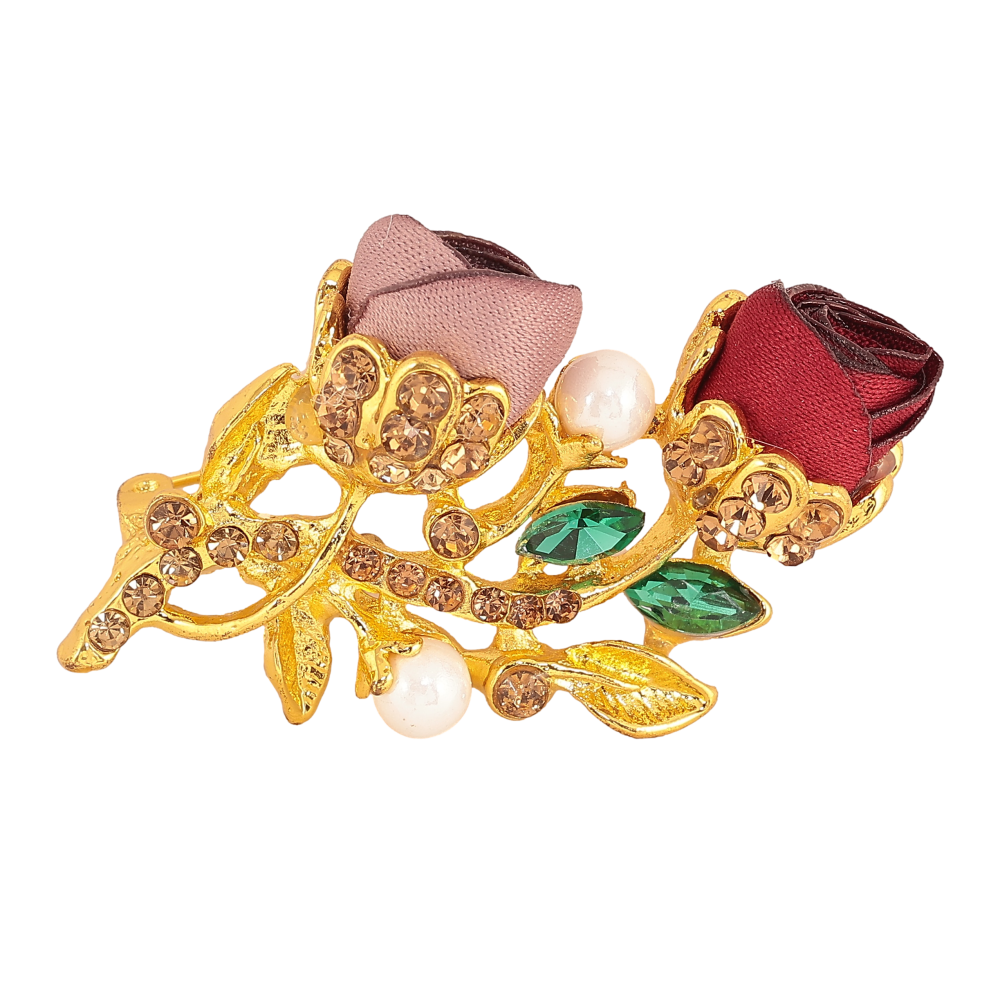 Брошка "Бежева та червона квіточки"