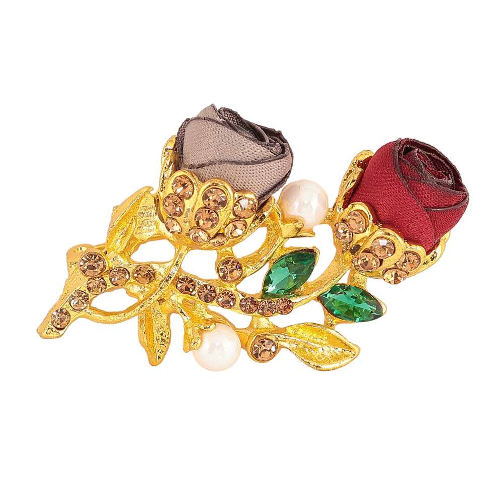 Брошка "Бежева та червона квіточки"