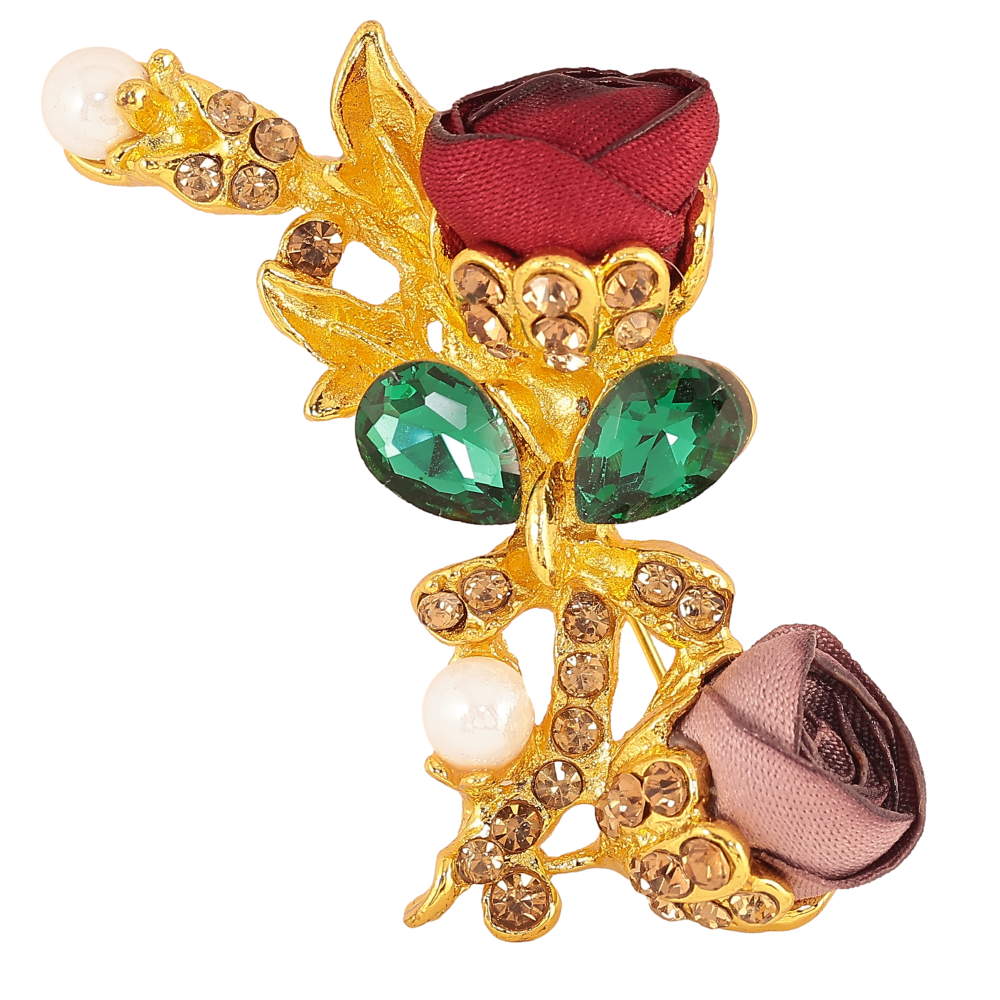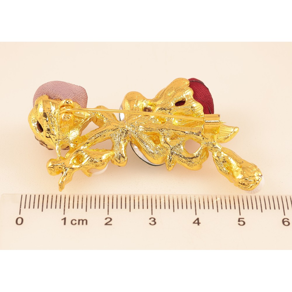 Брошка "Бежева та червона квіточки"
