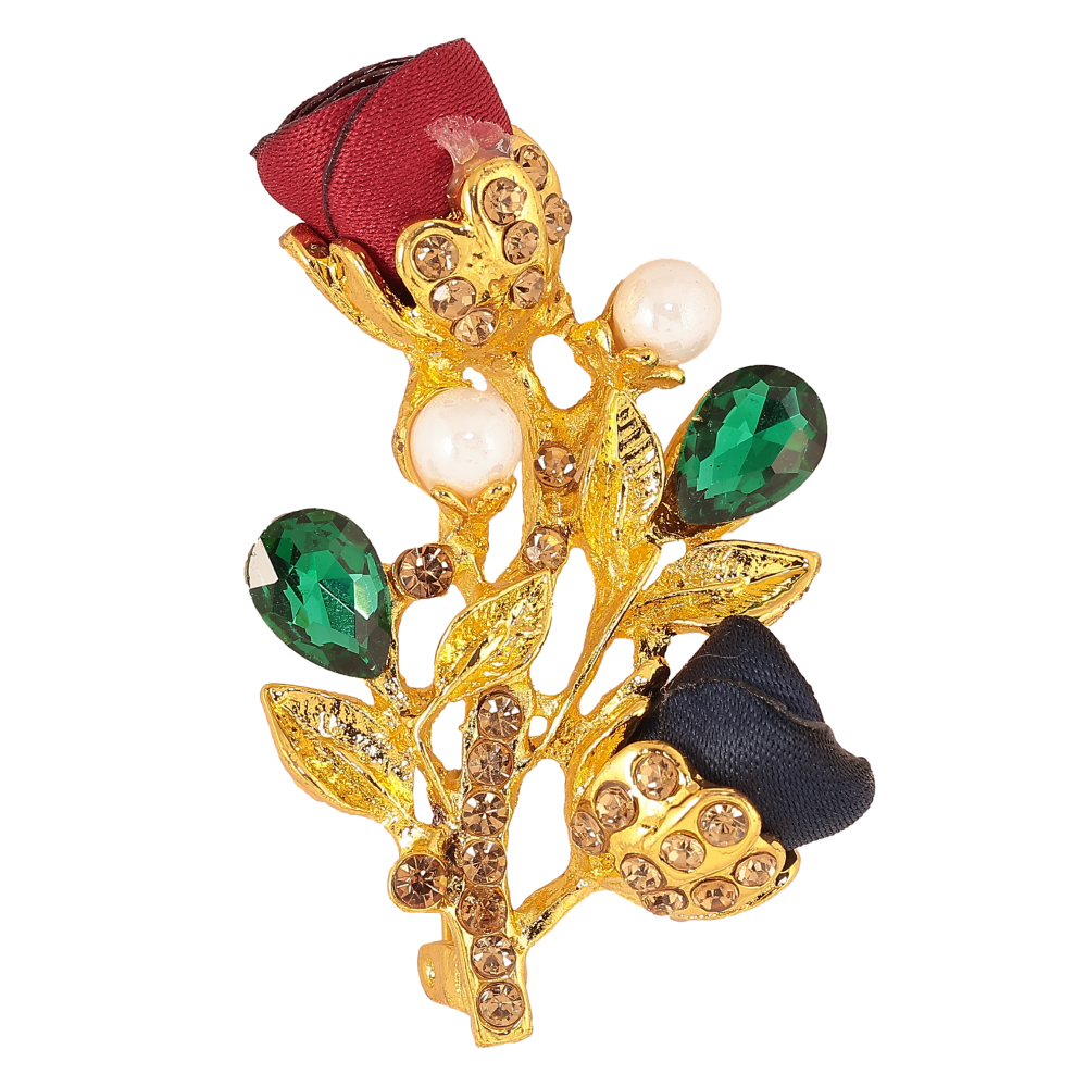 Брошка "Гілочка з червоно-синіми квіточками, стразами та перлинами"