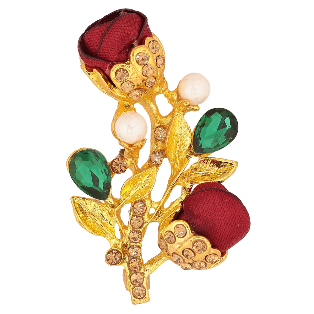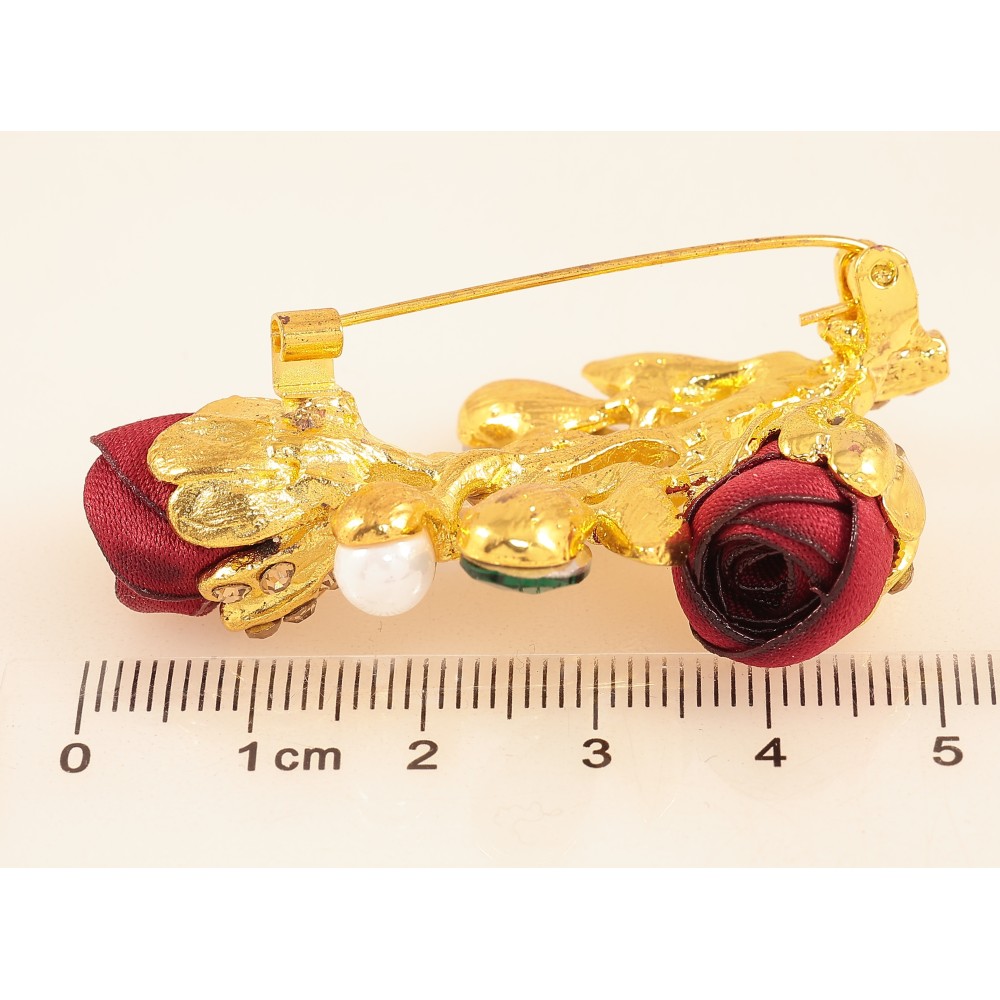 Брошка "Гілочка з червоними квіточками, стразами та перлинами"