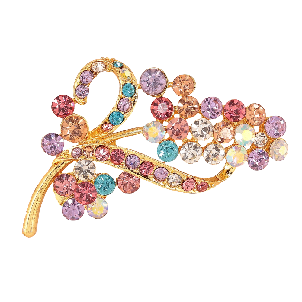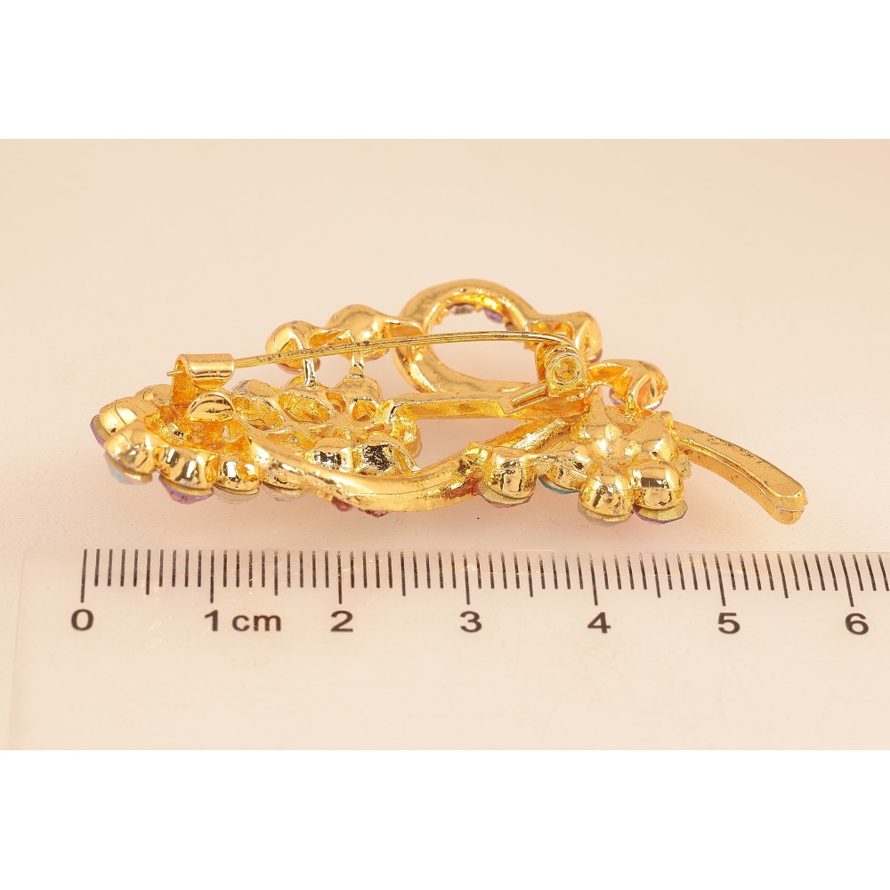 Брошка "Гілочка з різнокольоровими стразами"