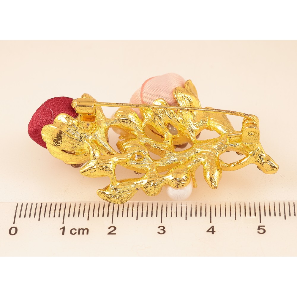 Брошка "Гілочка з рожево-червоними квіточками, стразами та перлинами" фото №2