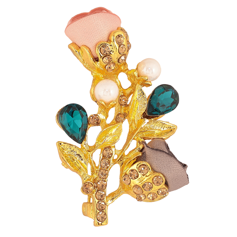 Брошка "Гілочка з рожево-сірими квіточками, стразами та перлинами"