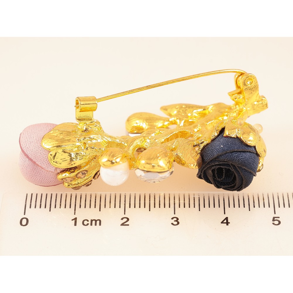 Брошка "Гілочка з рожево-синіми квіточками, стразами та перлинами"