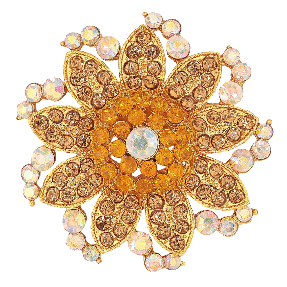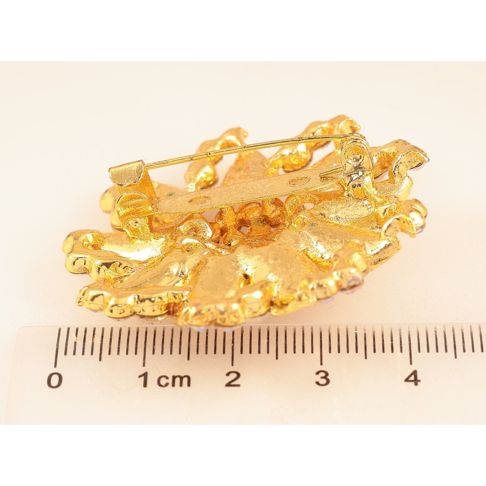 Брошка "Квітка із золотистими стразами"