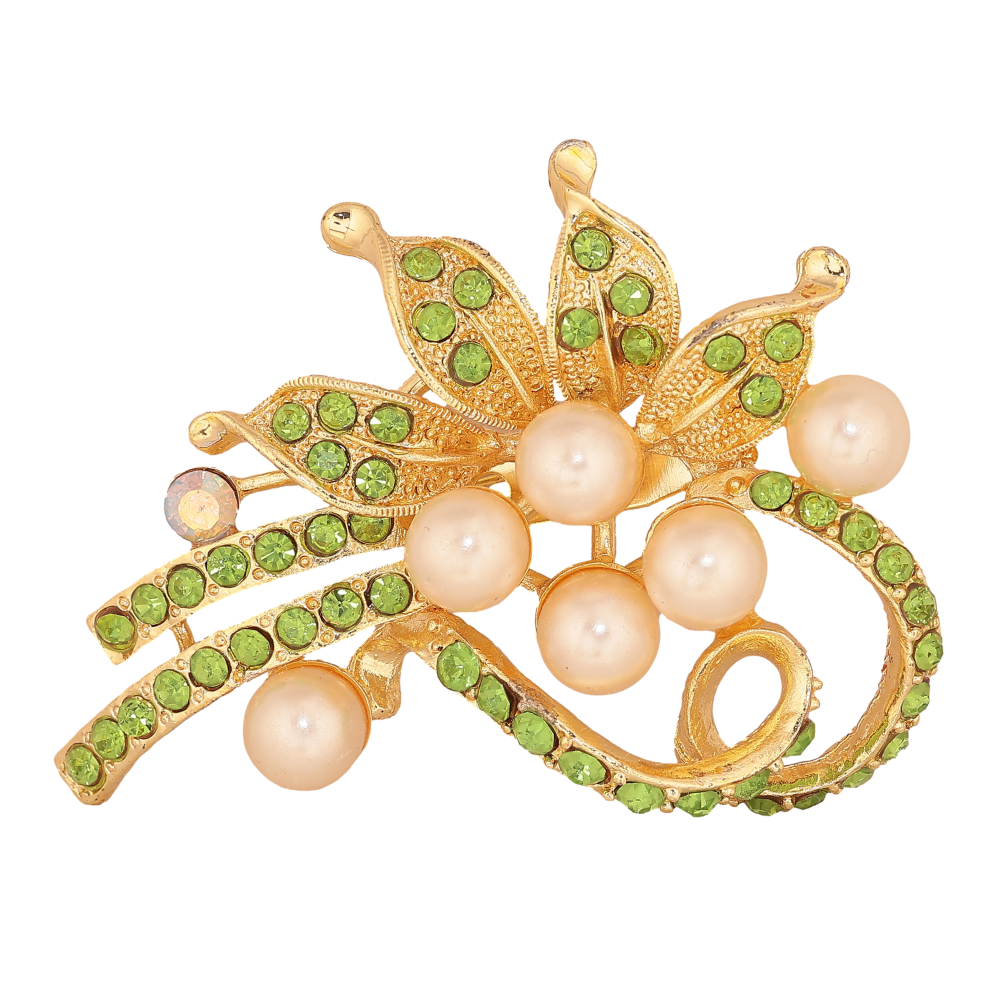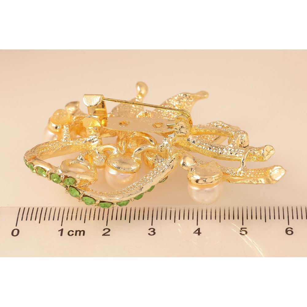 Брошка "Квіткова композиція із зеленими стразами та перлинами"