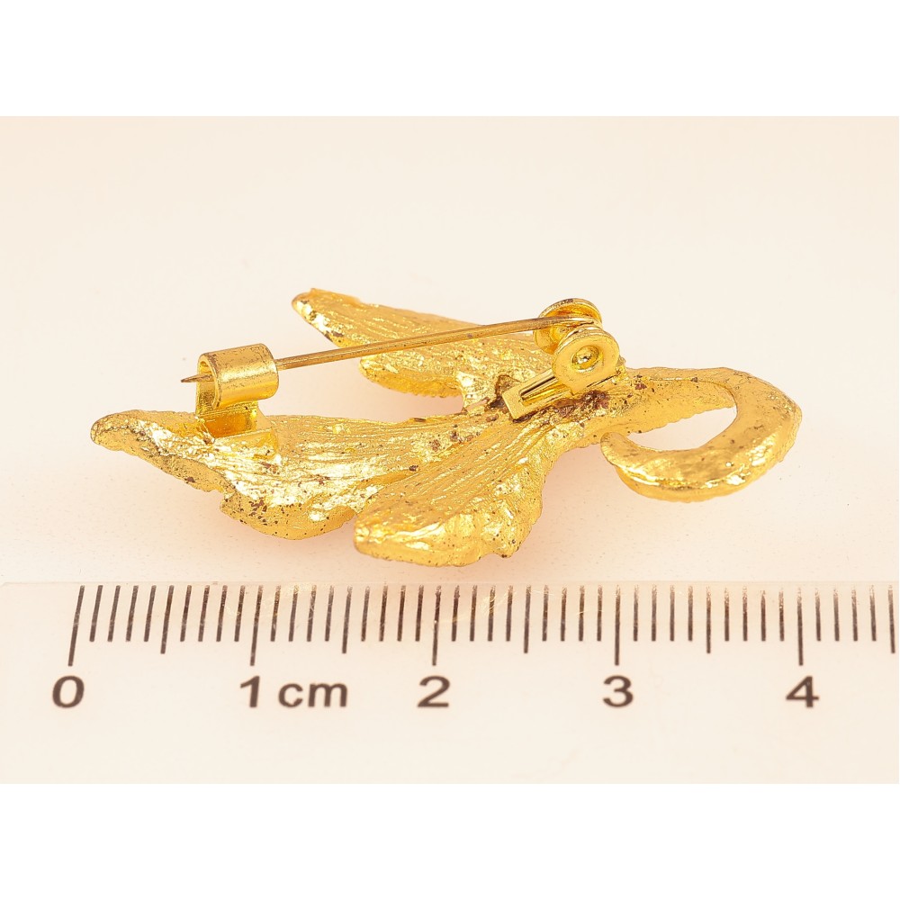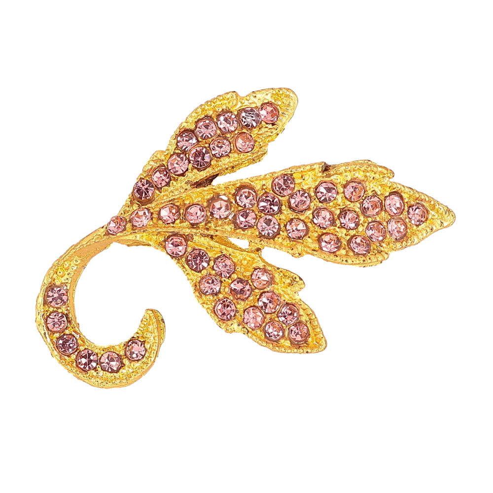 Брошка "Листок з рожевими стразами"