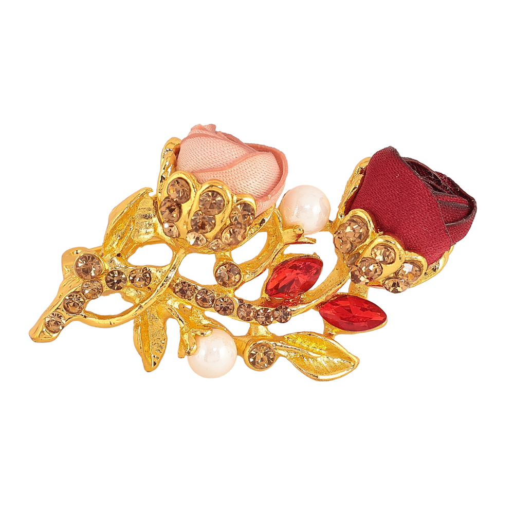 Брошка "Рожева та червона квіточки"
