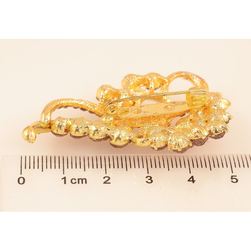 Брошка "Візерунок з бордовими стразами"