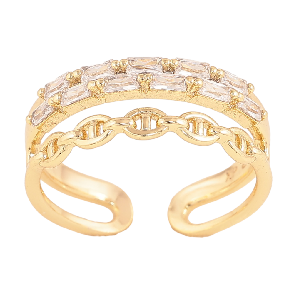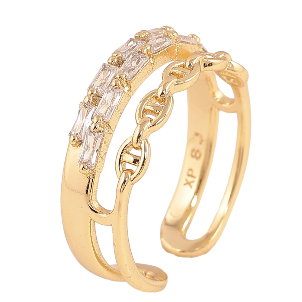 Каблучка Xuping колір Позолота 14K "Доріжка кристалів з візерунком ланцюжок"
